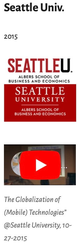 Western & Asian Social Media is powerful. Using video content can help influence the design of software and hardware. This affects mobile devices. This has been a strategic tool I have utilized for 20 years to help my go-to-market strategies. It requires a Rainmaker who can effectively explain technology in multiple languages in simple terms with the ecosystem. This explanation helps lay the groundwork for acceptance and adoption by key decision-makers. Mobile technologies being pitched are emerging, cutting-edge, and important to help scale and standardize. Through this process, I have designed mobile technologies. I have embedded at least 4-5 of them into Smartphones and (loT) Internet of Things devices. I have done this successfully since 2008 (see resume). The concept involves capturing your public speaking content. Then, upload it to streaming video media sites. Broadcast the hyperlink on social media sites (like LinkedIn). I was invited to explain this concept to Academic Institutes. I had the opportunity to show at both The University of Washington and Seattle University.